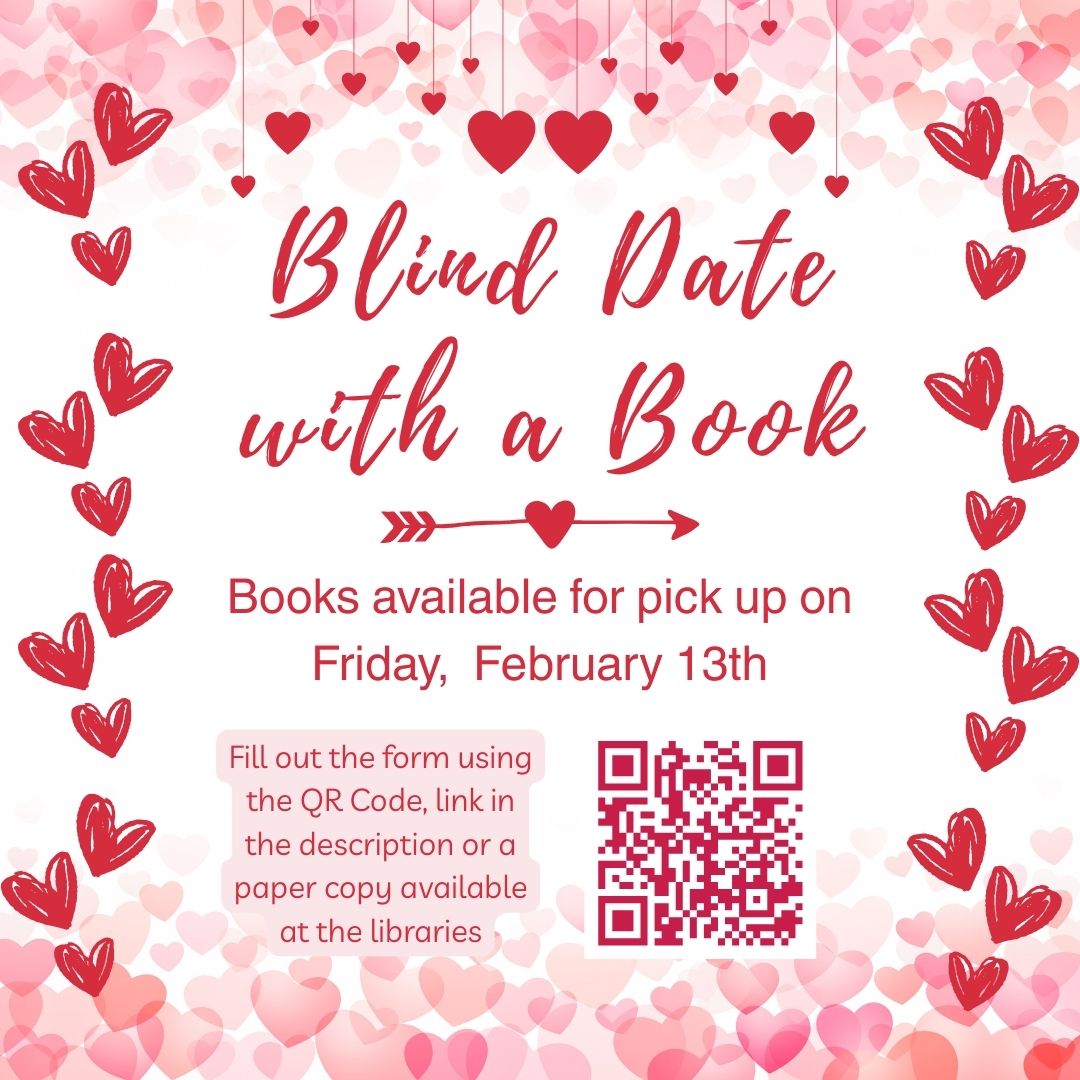 It’s time to go on a blind date…with a book! Fill out the form (linked below or paper copies are available at both libraries) to receive 1-4 books specifically picked for you. The books will be wrapped so you can keep the books a surprise until you get them home. All ages are welcome to participate. Books will be available for pick up starting Friday, February 13th