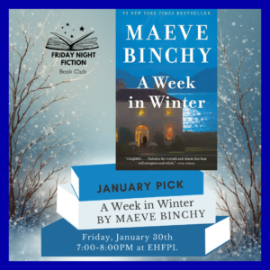 Friday Night Fiction is an adult contemporary and historical fiction book club at EHFPL. Join us for a discussion about our next book, A Week in Winter by Maeve Binchy. Copies are available behind the circulation desk. All are welcome!