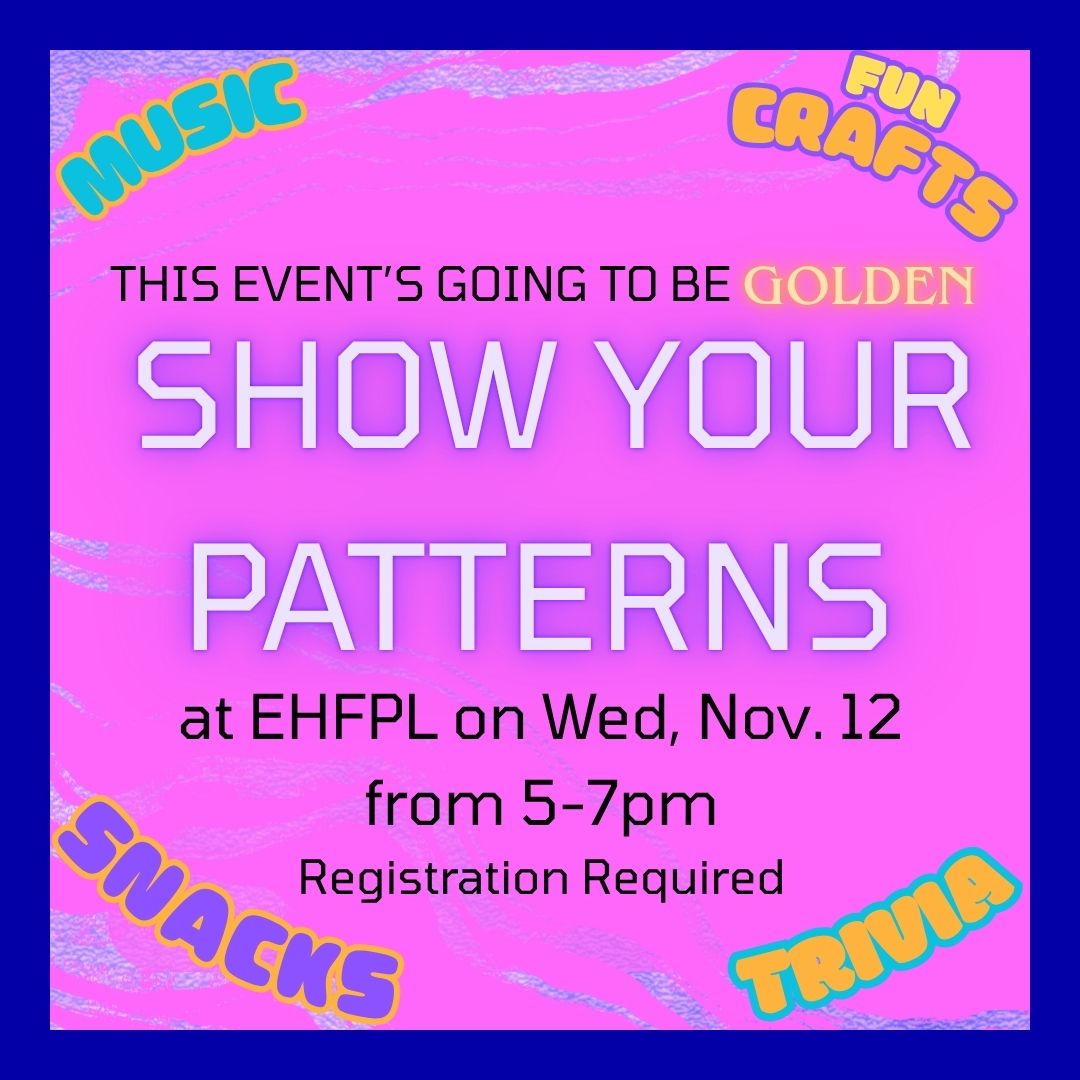 Join us at EHFPL on Wednesday, November 12 from 5-7PM to make a yarn and ribbon wreath at our adult craft night! All materials are provided, but space is limited,...